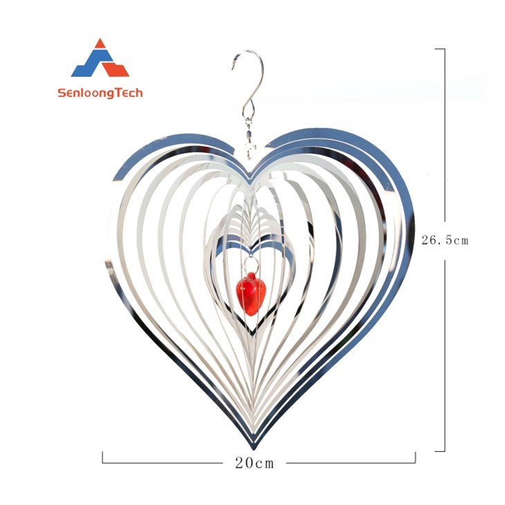Mae addurniadau troellwr gwynt metel yn waith celf addurniadol sy'n cyfuno technegau ysgythru metel traddodiadol â chysyniadau dylunio deinamig modern yn berffaith. Mae'r cynnyrch hwn yn cyfuno dyluniad strwythur cylchdroi siâp calon arloesol, gan roi effaith ddeinamig a deinamig i addurniadau metel statig. Trwy ysgythru'n fân wyneb dur gwrthstaen a metelau eraill, gellir creu patrymau a gweadau coeth amrywiol. Ar yr un pryd, mae dyluniad y bachyn cylchdroi yn caniatáu i'r addurn cyfan gynhyrchu cynnig cylchdro cain o dan weithred llif aer, gan gyflwyno effeithiau gweledol sy'n newid yn gyson. Mae ei wead metelaidd unigryw a'i nodweddion deinamig yn ei gwneud yn ddewis delfrydol i wella arddull ofodol, yn arbennig o addas ar gyfer anghenion addurniadol sy'n dilyn moderniaeth a chelf.